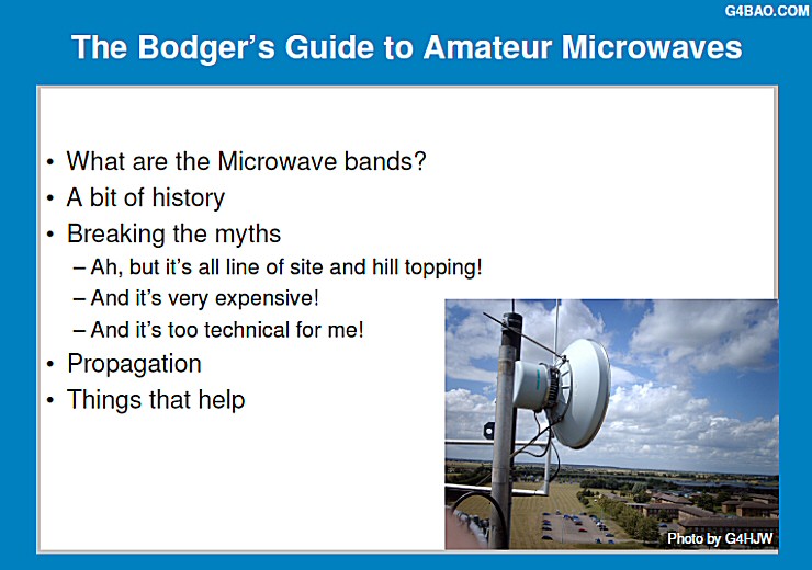 John G4BAO website: www.G4BAO.com UK Microwave Group: UKuG main website ON4KST: VHF / Microwave Chat Room Beacon Reports: BeaconSpot