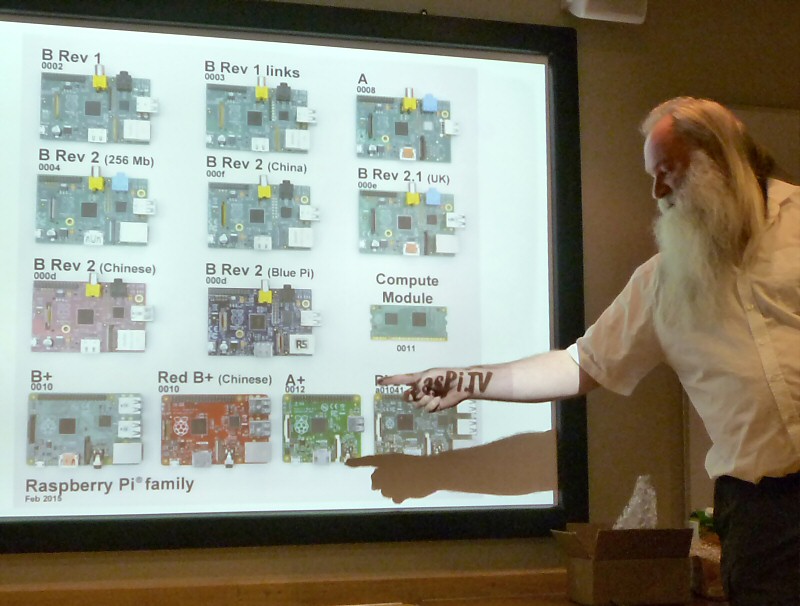 With the latest Pi2 model just released, Peter explained that with four 900MHz cores and 1GB of RAM, you essentially have a "computer" that can be used for e-mail, web-surfing, music playback. It may not be able to do it all at once, but it is certainly useful as a simple "surf the net" system. Many are used without a screen simply as a file-server, perhaps to distribute music/video around a home network.