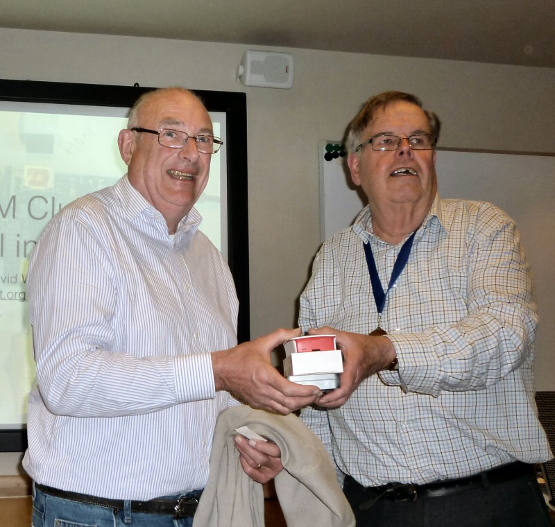 Getting Started can be as simple as a USB Dongle for 23cm reception and a look on ON4KST for QSO activity/spots.Carl had organised the CARS Raffle Prizes whilst John G8DET managed the draw. Carl also maintained the tradition of presenting the speaker with a souvenir CARS Mug!