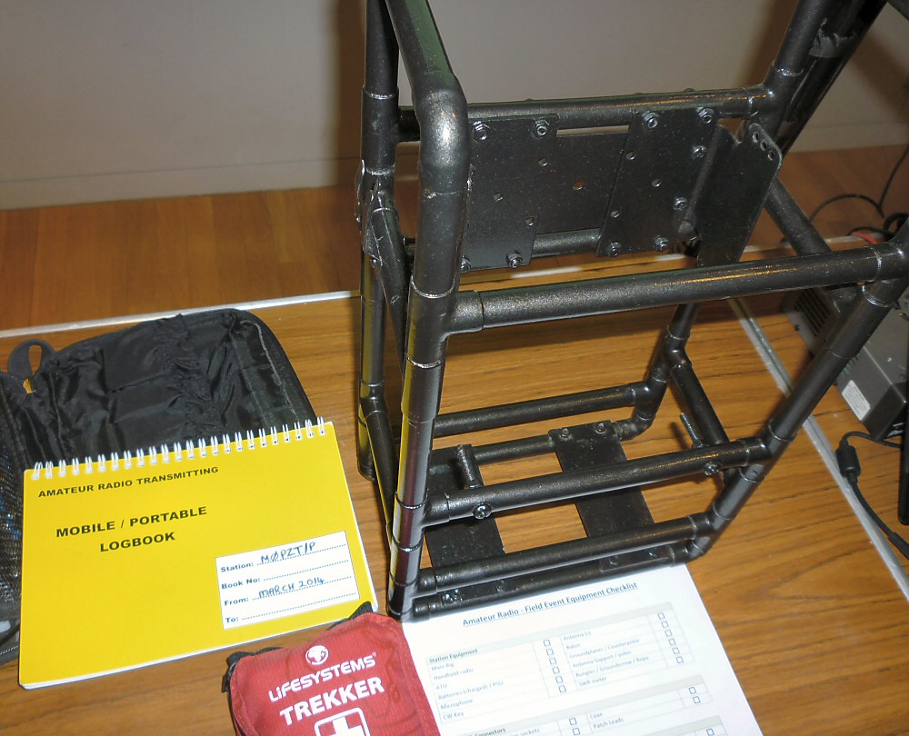 Charlie had a good deal of kit on display (with a few extras courtesy of Peter G0DZB). The single largest was a home made 'Porta-frame' that can hold his FT857, battery and accessories and fit in a ruck sack. It was soldered together from a total of ~4m of 15mm copper water pipe to provide a robust structure.