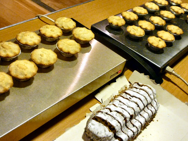 Graham G7JYD tuning against the clockBefore the meeting John G8DET had diligently reviewed various mince pies and the final choice was excellent - dozens were consumed with great compliments, whilst David & Myra helped with ample tea/coffee and biscuits.