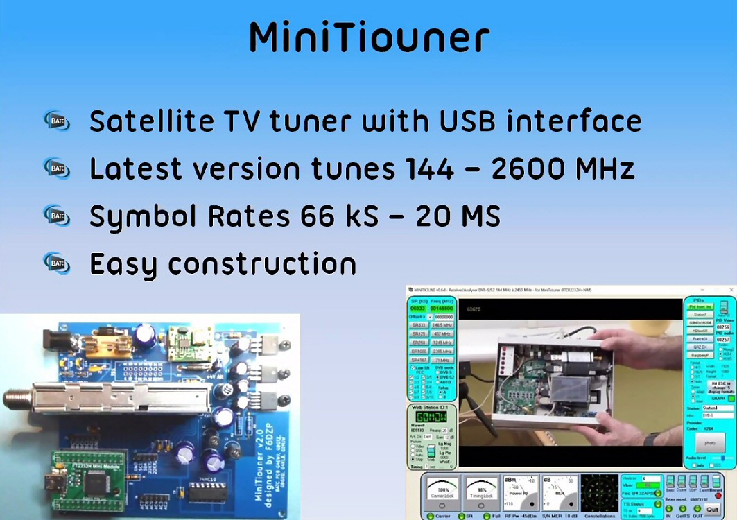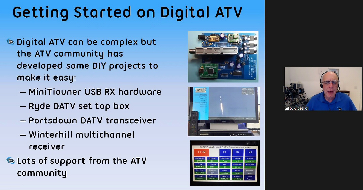 David showed how BATC and others had adapted Raspberry Pi’s, but also designed and made available DATV equipment such as the ‘Minitoune’ receivers and ‘Portsdown’ DATV transceiver.