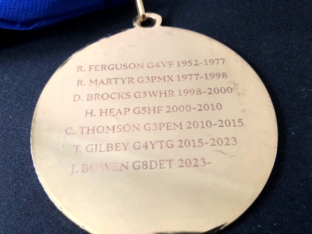 Following the formal business, John Bowen G8DET was presented with an 'upgraded' President's Badge that John M0JOC had skilfully arranged - larger than its predecessor to facilitate engraving