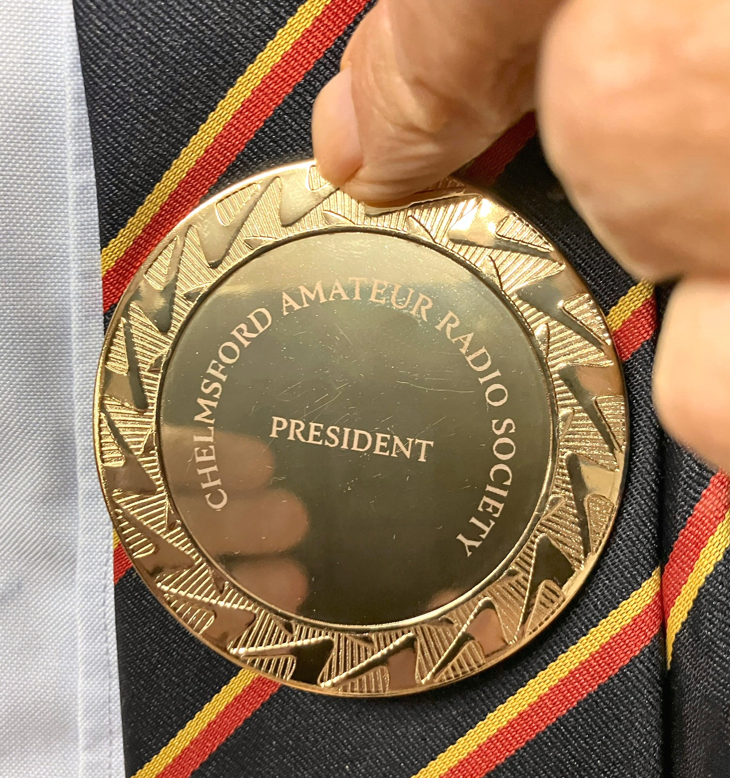 John G8DET gets the new Presidential badge of office