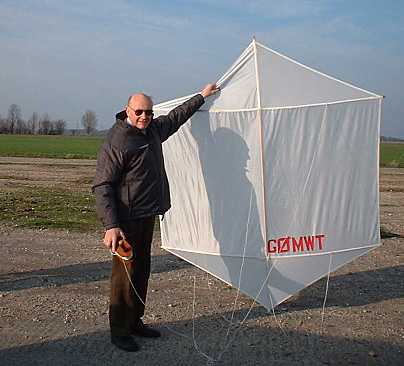 Tony, G4YTG with his Aerial Kite similar to that used by Marconi, 100 years ago.