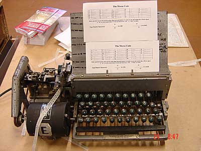 The Museum's Automatic Tape Punch - keyboard produces the Morse characters on the paper tape.The paper tape produced by the punch (above) is read by the Tape Reader, the output of which is fed to a radio transmitter.