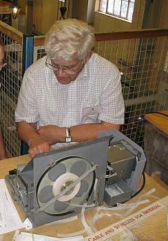 Geoff encouraged children to punch their name on the Morse Tape, put it in the Sender, hear it being sent to a receiver and finally punched out at the far end.