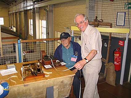 Geoff Lovegrove, G7KLV (back to us) and Colin, G0TRM demonstrating the Morse Sender & Reader.