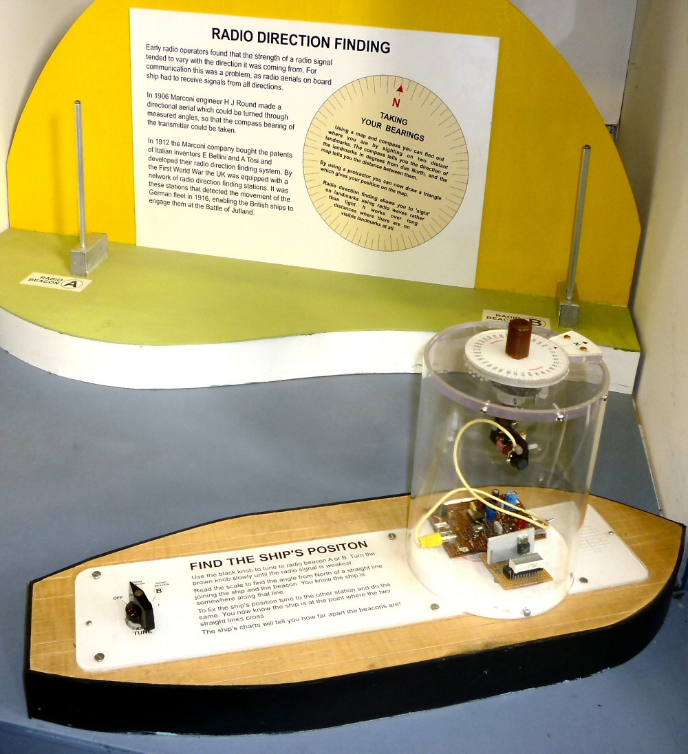 In addition to its historic exhibits, the museum has a number of hands-on educational items for both children and adults. Geoff Lovegrove G7KLV who is both a CARS Member and a Friend of the Museum created this one below, for showing how a directional antenna can help triangulate a ships position from a pair of radio beacons.