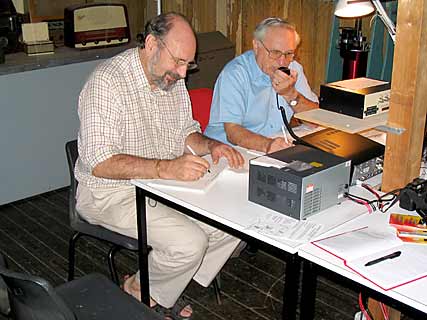 Denis M0FHA (logging) and Malcolm G4KGL relaxing between QSOs.