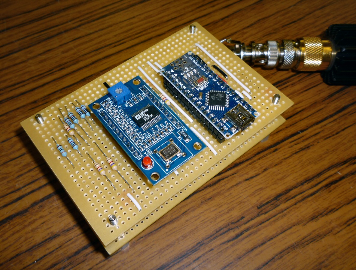 - Construction: Melvin 2E0DNS had been busy building a linear resistance meter and sine wave oscillator. Alan M0IWZ brought his assembled SWR bridge (see last month for circuit). This uses an Arduino AD9850 synth and Ardiono-nano controller to form a much cheaper combo than commercial products. And... 2m Slim Jims made a return as well