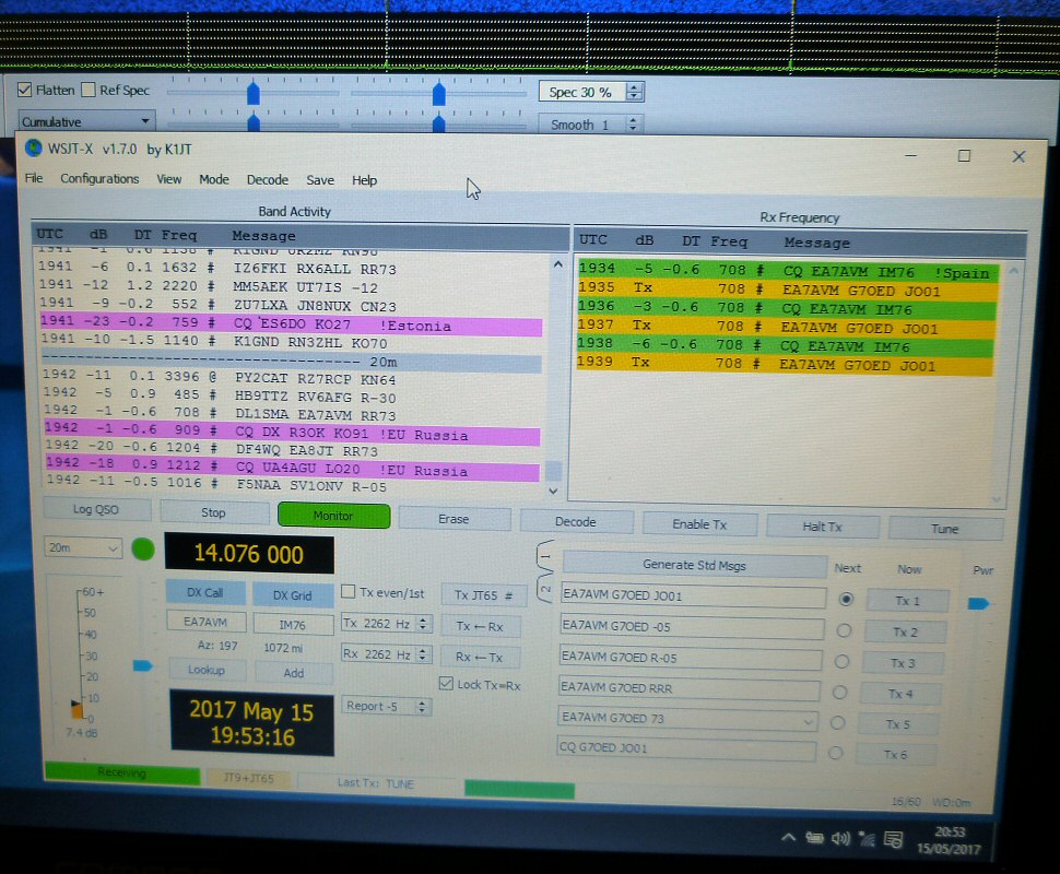 - Datamodes: Following a request in the Skills Night Survey, Richard G7OED was running datamode demos. Unfortunately there wasnt much RTTY, but a rather more modern JT65 demo using WSJT-X software ran fine.