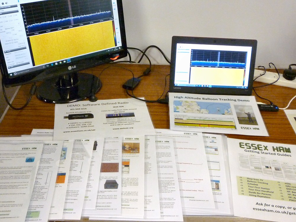 - Getting Started: Advice and leaflets from Essex Ham were on display along with video demos. This month also featured info on High Altitude Balloon tracking.