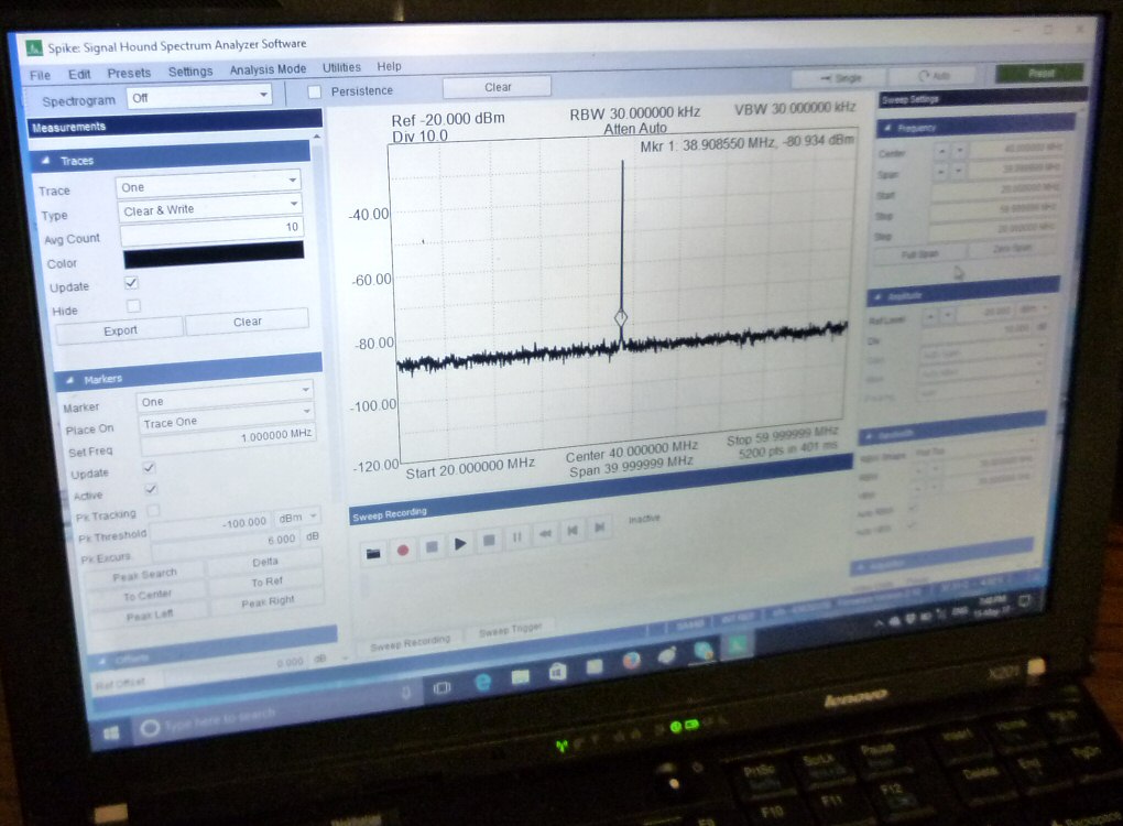 - Testing, Testing: Mike G4NVT brought along his new spectrum analyser a SignalHound USB-SA44. He had built another Colpitts oscillator on ~40MHz to demo it with