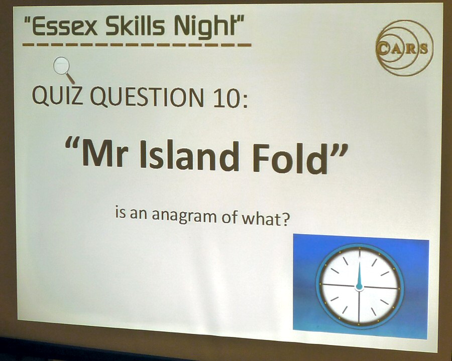 - Quiz: The CARS quiz, hosted by the re-elected CARS Chairman Chris G0IPU had the usual selection of really easy questions (not)...