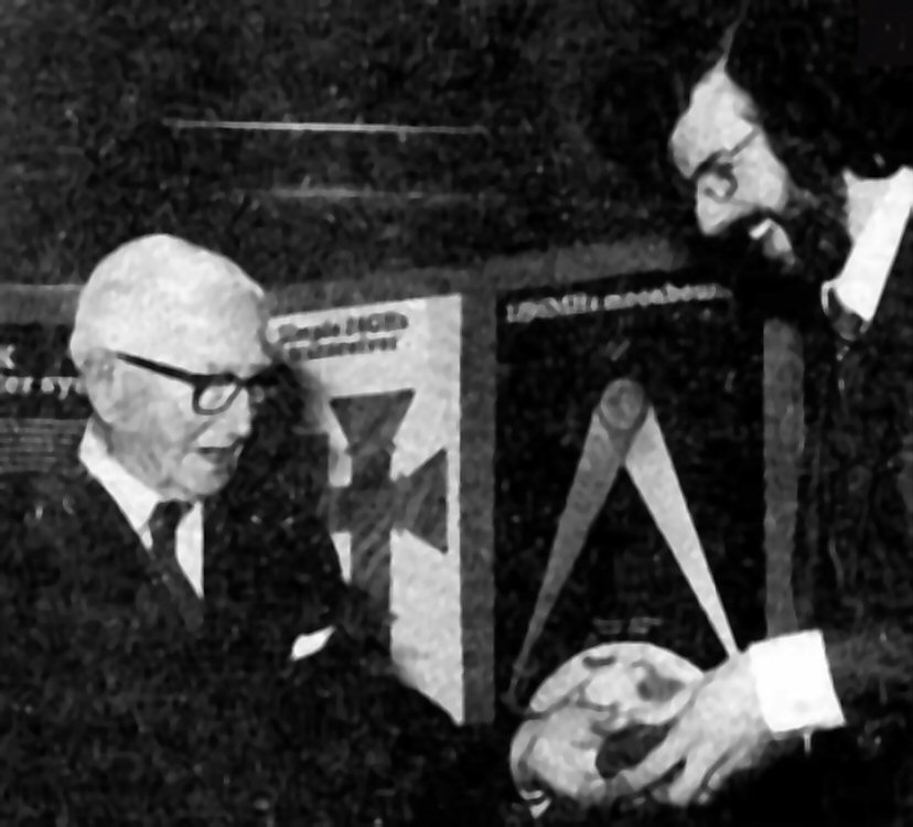 The presentation was made by Mr Ronald Ferguson, OBE, G4VF, who was introduced to the audience by Mr Basil O'Brien. He gave a brief resume of Mr Ferguson's long association with the Marconi Company: from his early days as a radio officer on passenger liners before the first world war; various commercial and management appointments at home and overseas; until his retirement in the 'sixties as managing director of the Marconi Marine Company.